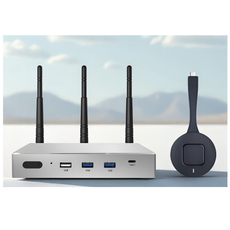 1. The host supports access to USB camera, HDMI camera and USB microphone. With TYPE C screen transmitter and HDMI screen transmitter, the Windows client can realize BYOM function and share the camera and microphone wirelessly on Windows/Mac computers. Support MJPEG/H264/H265 USB camera.